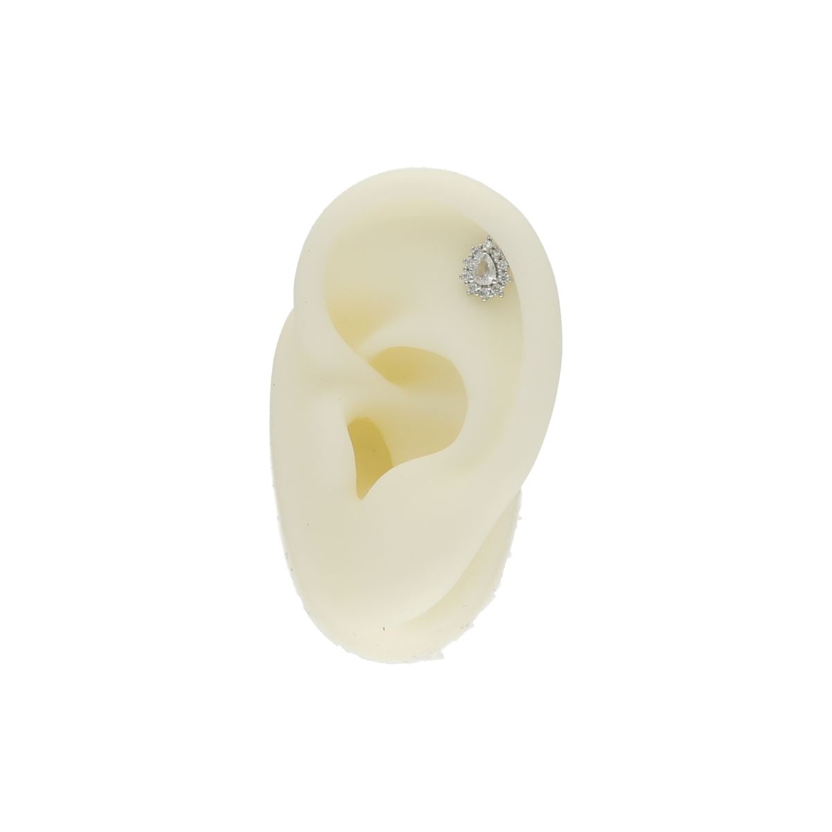 Labret/helix/tragus piercing in chirurgisch staal druppel met witte kristallen