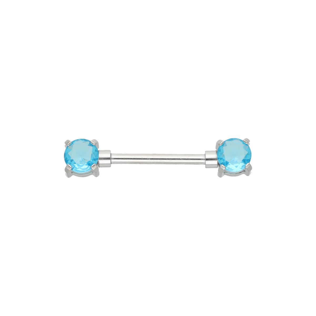 Tepelpiercing in chirurgisch staal met licht blauwe kristallen
