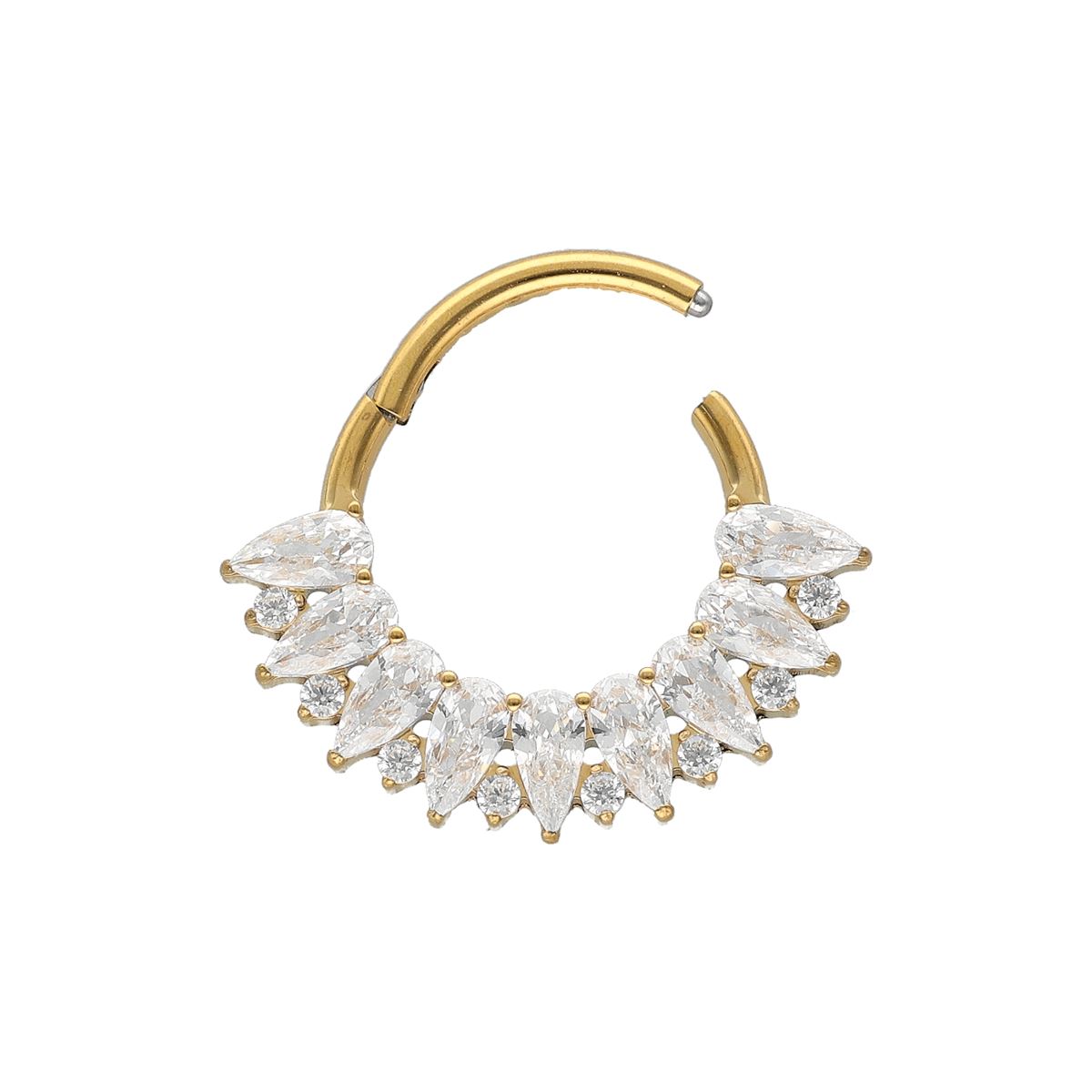 Segmentring/clicker in goud chirurgisch staal bedekt met witte kristallen