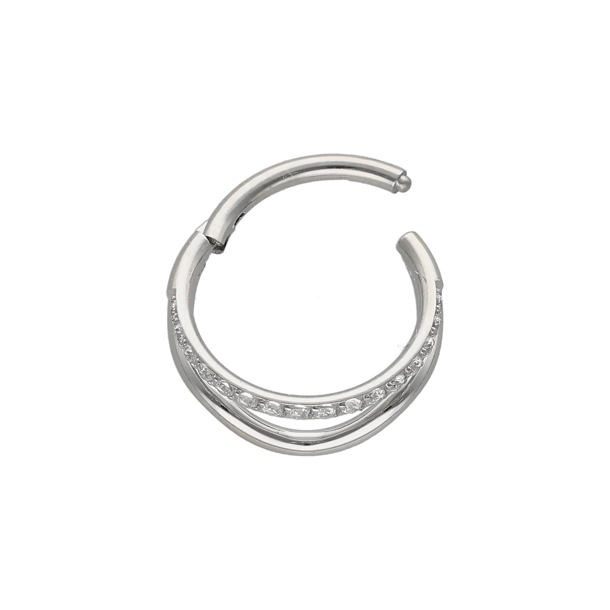 Segmentring/clicker in chirurgisch staal dubbele rij waarvan 1 rij bedekt met kristallen